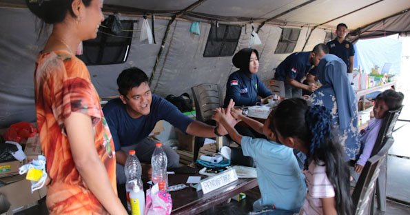 “Setiap pasien yang datang ke posko kesehatan kami berikan masker. Hal ini sebagai upaya pencegahan ISPA mengingat kondisi pascabencana, di mana tanah yang mengering di permukaan aspal menimbulkan debu beterbangan saat dilalui kendaraan,” jelasnya.