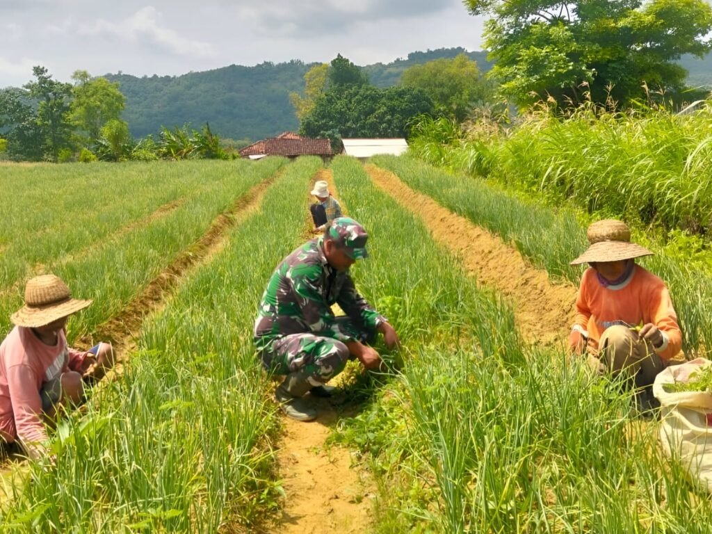 SUMENEP, 29 Januari 2026 – VNNMedia –  Deretan tanaman bawang merah tampak hijau membentang di Desa Mandala, Kecamatan Rubaru, Kabupaten Sumenep. Di sela-sela barisan tanaman itu, seorang Babinsa berseragam loreng berjongkok bersama petani, mencabuti gulma dan memeriksa pertumbuhan tanaman satu per satu.