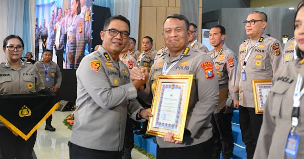 Dua penghargaan tersebut diserahkan oleh Aslog Kapolri, Irjen Pol Suwondo Naingholan,S.I.K,M.H kepada Kepala Biro Logistik (Karolog) Polda Jatim, Kombes Pol Dirmanto pada kegiatan Monitoring dan Evaluasi (Monev) Logistik Polri Tahun 2025 di Jakarta, Senin (08/12/2025).