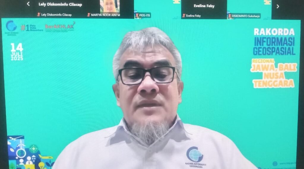 Surabaya, 14 Juli 2025, VNNMedia – Badan Informasi Geospasial (BIG) Indonesia menggelar Rapat Koordinasi Informasi Geospasial (IG) Regional Jawa, Bali, dan Nusa Tenggara secara webinar dengan tema “Mendorong Hilirisasi Industri Geospasial Sinergi untuk Kemandirian dan Daya Saing Nasional”, sekaligus memperkuat kolaborasi lintas sektor dalam mendukung transformasi ekosistem geospasial nasional, Senin (14/7/2025).
