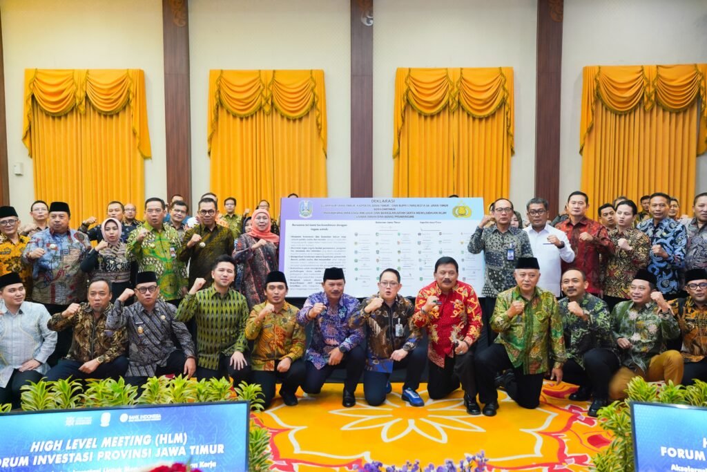 Salah satu upaya itu dengan cara mendorong dan menguatkan komitmen bersama Kepala Daerah se-Jatim, melalui High Level Meeting (HLM) Forum Investasi Jawa Timur yang diselenggarakan di Gedung Negara Grahadi Surabaya, Selasa (15/7/2025).