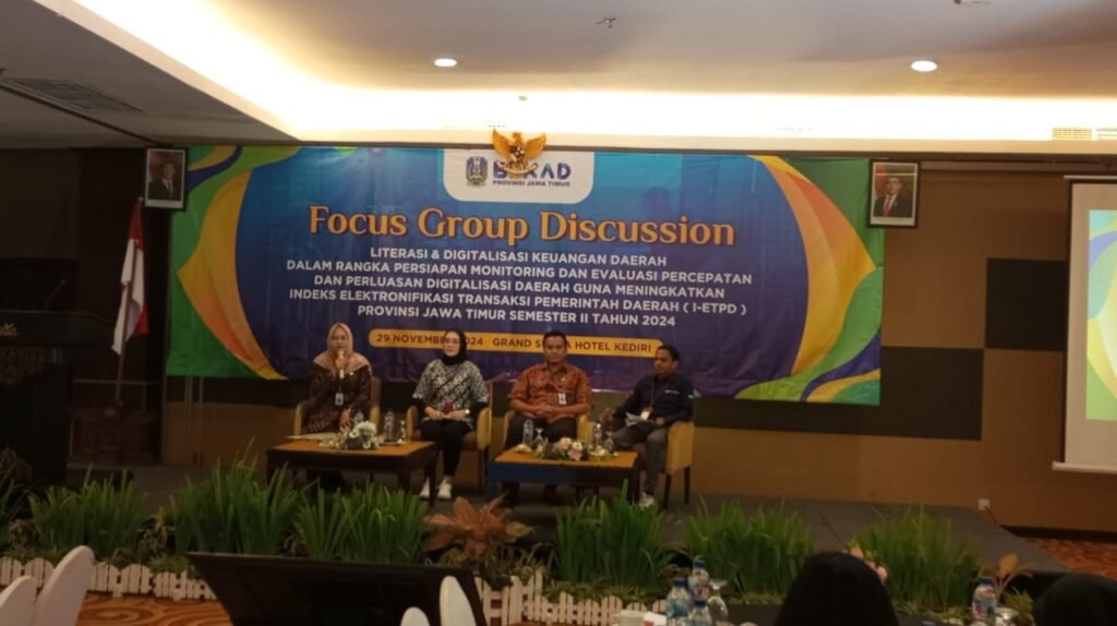 Surabaya, 29 November 2024, VNNMedia – Pemerintah Provinsi Jawa Timur terus memperkuat langkah dalam mempercepat digitalisasi keuangan daerah melalui Focus Group Discussion (FGD) bertajuk Literasi & Digitalisasi Keuangan Daerah. Acara yang berlangsung di Grand Surya Hotel, Kediri, pada Jumat (29/11/2024), ini bertujuan untuk mempersiapkan monitoring dan evaluasi (monev) percepatan digitalisasi daerah guna meningkatkan Indeks Elektrifikasi Transaksi Pemerintah Daerah (I-ETPD) semester II tahun 2024.