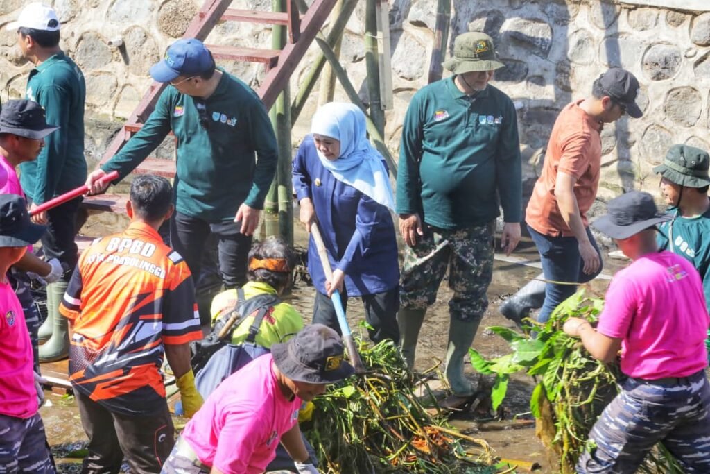 Selain memimpin aksi bersih sungai, Khofifah juga menyerahkan secara simbolis dropbox sampah berkapasitas 240 liter kepada warga serta melakukan penanaman pohon pule bersama Wali Kota Probolinggo Aminuddin.