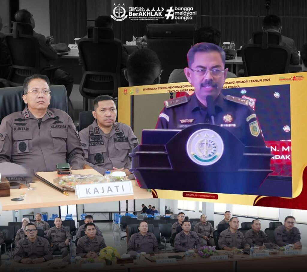 MAGETAN, Jumat 17 Oktober 2025 – VNNMedia – Kepala Kejaksaan Tinggi Jawa Timur, Dr. Kuntadi, S.H., M.H., bersama Kepala Kejaksaan Negeri Magetan, Yuana Nurshiyam, S.H., M.Hum., CSSL dan jajaran mengikuti kegiatan Bimbingan Teknis (Bimtek) “Menyongsong Penerapan Undang-Undang Nomor 1 Tahun 2023 tentang Kitab Undang-Undang Hukum Pidana (KUHP)” secara daring di Aula Kejari Magetan, Kamis (16/10/2025).
