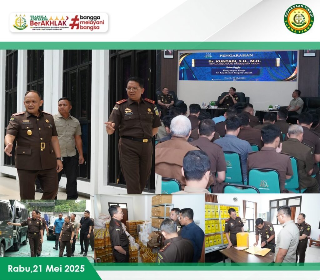 GRESIK, Rabu 21 Mei 2025 – VNNMedia – Kepala Kejaksaan Tinggi Jawa Timur, Dr. Kuntadi, melakukan inspeksi mendadak (sidak) ke Kejaksaan Negeri Gresik pada Selasa (20/5). Dalam kunjungan tersebut, beliau didampingi oleh Asisten Intelijen Kejati Jatim, I Ketut Maha Agung, S.H., M.H.