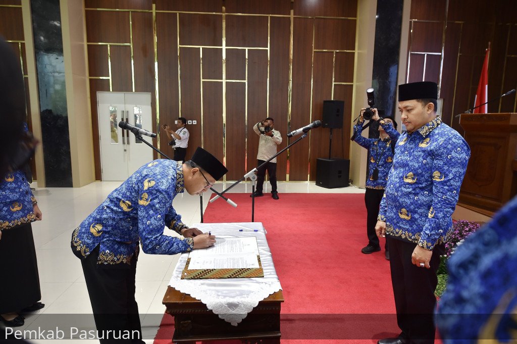 Pelantikan digelar di Auditorium Mpu Sindok, Komplek Kantor Bupati Pasuruan dan disaksikan Ketua DPRD, Samsul Hidayat; Sekretaris Daerah (Sekda) Yudha Triwidya Sasongko, para Asisten dan pejabat lainnya.