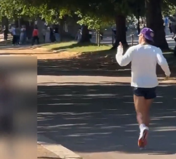 Dalam video yang dibagikan oleh penggemar di platform X pada hari Minggu itu, memperlihatkan Styles dengan mengenakan topi bisbol ungu, kaos lengan panjang warna putih, dan bercelana pendek sedang jogging santai di Hyde Park, London, Inggris