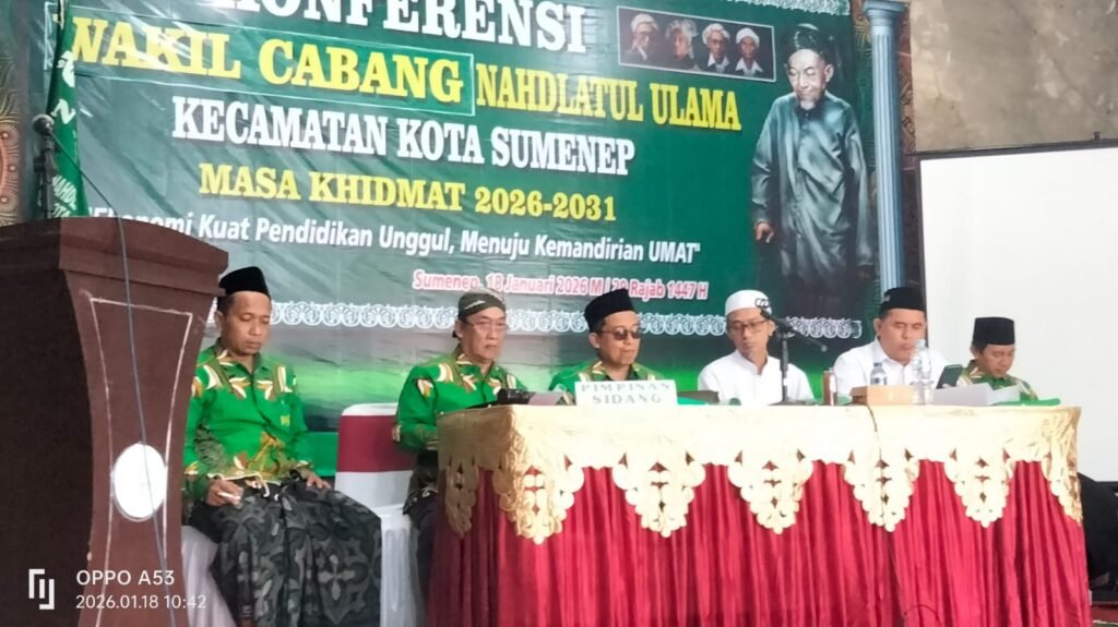 SUMENEP, 18 Januari 2026 – VNNMedia – Konferensi Wakil Cabang Nahdlatul Ulama (MWCNU) Kecamatan Kota Sumenep digelar di Aula Lantai 2 Kantor MWCNU Kota Sumenep, Ahad (18/01/2025). Konferensi ini menjadi momentum konsolidasi organisasi sekaligus peneguhan arah khidmah NU di tingkat kecamatan.