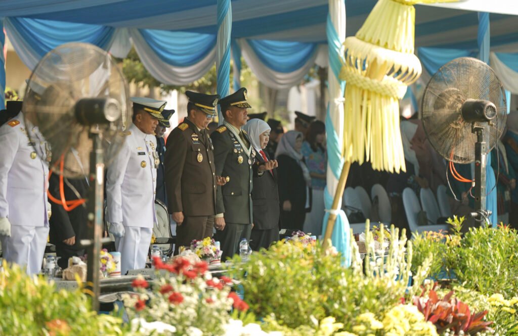 Pangdam, beserta para PJU di lingkungan Kodam Brawijaya, mengikuti upacara yang berlangsung khidmat dan penuh Susana keakraban, tampak hadir pula Gubernur Jatim, Khofifah Indar Parawansa di acara tersebut.