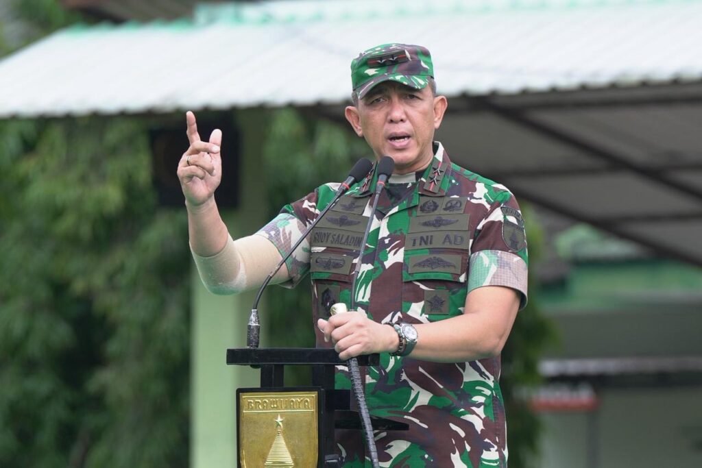Pangdam V/Brawijaya memberikan pengarahan tegas. Satgas di bawah komando Danyonzipur 5/ABW, tugas mulia bantu Aceh Tengah seperti Sumbar-Sumut. Tekankan amanah, pengalaman prajurit muda, taati perintah, jaga solidaritas, koordinasi BNPB, utamakan keamanan serpas Malang-Surabaya-Lhokseumawe, hindari pelanggaran hukum.
