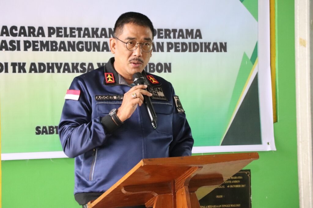 Selanjutnya, Kajati Maluku Agoes SP selaku Pengawas IAD Wilayah Maluku, dalam sambutannya mengharapkan Momen yang sementara dilaksanakan pada hari ini, menjadi langkah awal yang merupakan wujud dari komitmen bersama untuk berinvestasi pada masa depan Bangsa khususnya pada Pendidikan anak-anak usia dini.