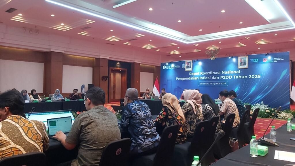 SURABAYA, 29 AGUSTUS 2025 – VNNMedia — Pemerintah Provinsi Jawa Timur bersama Bank Indonesia KPw Jatim menggelar rapat koordinasi tindak lanjut Rakornas Pengendalian Inflasi dan Percepatan Digitalisasi Daerah 2025 di Kantor BI Jatim, Jumat (29/8/2025).