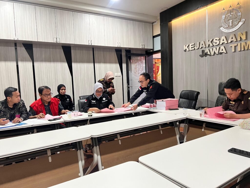 • Jo Surat Perintah Penyidikan Kepala Kejaksaan Tinggi Jawa Timur Nomor: PRINT- 13/M.5/Fd.2/01/2025 tanggal 03 Januari 2025.Dalam rangkaian penyidikan, Penyidik telah melakukan pemeriksaan terhadap 32 (tiga puluh dua) orang saksi, pemeriksaan ahli, penyitaan surat/dokumen, serta menyita barang bukti berupa uang tunai sebesar Rp3.600.000.000,- (tiga miliar enam ratus juta rupiah) beserta barang bukti lainnya.