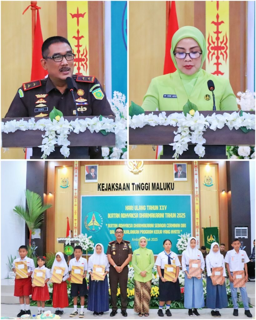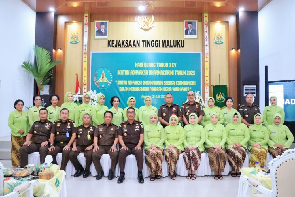 AMBON, Senin 21 Juli 2025 – VNNMedia – Kepala Kejaksaan Tinggi Maluku Agoes Soenanto Prasetyo, S.H.M.H selaku Pengawas Ikatan Adhyaksa Dharmakarini Wilayah Maluku, mengharapkan agar Para Isteri Pegawai Kejaksaan Tinggi Maluku dapat menjadi bagian yang tak terpisahkan dari eksistensi dan integritas Korps Adhyaksa dalam mendukung pembangunan Bangsa dan Negara menuju Indonesia Emas 2045.
