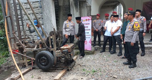 Kegiatan bakti sosial tersebut meliputi pemberian sumur bor, penyaluran puluhan paket sembako kepada warga kurang mampu, serta pelayanan kesehatan gratis yang melibatkan tenaga kesehatan dari Polres Kediri Polda Jatim.