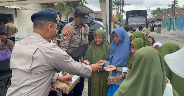 Pembagian snack dan susu tersebut mendapat sambutan hangat dari para siswa dan warga sekitar.