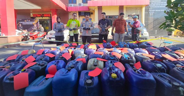 Dari hasil penangkapan, Polisi juga mengamankan barang bukti berupa 45 jerigen berisi Pertalite dengan total sekitar 1.575 liter, 26 jerigen kosong, 20 barcode BBM, dua pelat nomor kendaraan, 46 stiker pelat nomor, satu pompa elektrik, lima selang plastik, serta tujuh unit mobil.