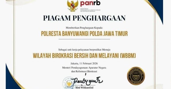 Banyuwangi, 14 Februari 2026, VNNMedia – Polresta Banyuwangi Polda Jawa Timur kembali menorehkan sejarah dengan meraih penghargaan Zona Integritas (ZI) Menuju Wilayah Birokrasi Bersih dan Melayani (WBBM) Tahun 2025, Kamis (11/2/2026)