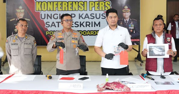 Dua pelaku telah diamankan oleh Satreskrim Polresta Sidoarjo Polda Jatim yakni T.S (36) asal Simalungun, Sumatera Utara, dan F.P (42) asal Lampung Tengah.