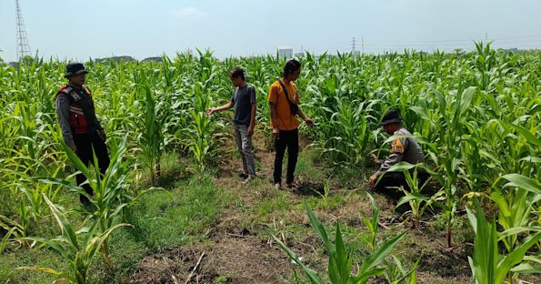 Pada Senin (30/3/2026), Kanit Binmas Polsek Krembung Aiptu Adin melaksanakan pengecekan perkembangan tanaman jagung di lahan Desa Tanjekwager, Kecamatan Krembung, Kabupaten Sidoarjo.