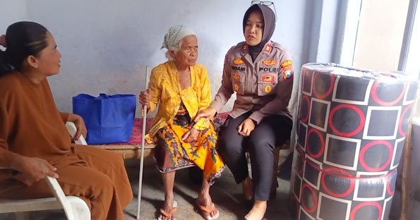 Pada Jumat siang (20/2/26), personel Sat Binmas Polres Lumajang Polda Jatim mendatangi kediaman Nenek Murtimah untuk menyerahkan bantuan sosial berupa satu unit kasur baru dan paket sembako.