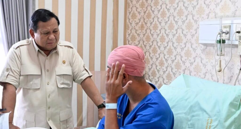 “Saya hari ini merasa terpanggil menengok petugas-petugas kita, prajurit-prajurit kepolisian yang cedera. Selama ini ada 43 korban, sebagian sudah pulang, tapi 17 orang masih dirawat,” ujar Presiden Prabowo.