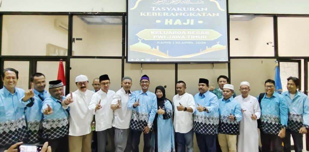 SURABAYA, 30 APRIL 2026 – VNNMedia – Sebanyak 11 jemaah haji dari kalangan wartawan dan pengurus Persatuan Wartawan Indonesia (PWI) Jawa Timur resmi dilepas dalam acara tasyakuran di Graha PWI Jatim, Surabaya, Kamis (30/4/2026). Rombongan dijadwalkan berangkat pada 5 Mei 2026 dalam gelombang pertama.